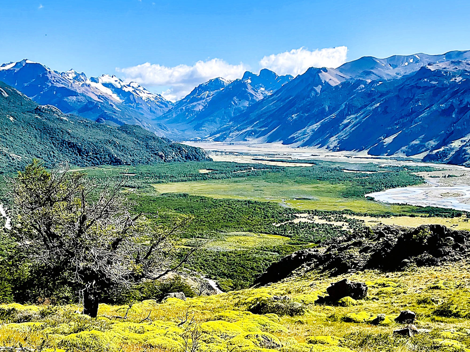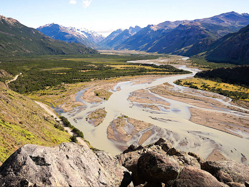 Wir: fahren auf der Ruta Nacional 40 durch die typische patagonische Steppe einem pechschwarzen Himmel entgegen. Kein Windhauch ist zu spüren: ist es die Ruhe vor dem Sturm oder einfach nur Glück, den berüchtigten patagonischen Winden bisher kaum ausgeliefert gewesen zu sein? Die Ruta 23 zweigt ab und führt entlang des "Rio La Leona", der durch Gletscherschmelze gespeist wird. Er windet sich durch die Steppe und gräbt sich tief in die Landschaft ein. Die abwechslungsreiche Umgebung zeigt Spuren vulkanischer Aktivitäten mit bizarren Felsformationen und erodierten Hügeln. Dann tauchen sie am Horizont auf: die majestätischen Gipfel der südlichen "Cordillera de los Andes" mit dem "Cerro Torre" (3.128 m) einem Granitberg mit 3 Türmen, dem "Aguja Poincenot" ( 3.002 m) und ihrem 3.406 m hohen Star "Fitz Roy". In der Sprache der "Tehuelche-Indianer" heißt er wegen der oft an der Spitze sichtbaren Wolken "Chaltén", was „der Rauchende“ bedeutet. Ausgangspunkt aller Expeditionen und Wanderungen ist das kleine „Touristen-Örtchen “El Chaltén". Wir aber wollen heute Silvester feiern: bei herrlichem Sonnenschein essen wir Linseneintöpfe mit Rindfleisch, trinken Craftbier und verlieren uns im Anblick des wolkenfreien Gipfels des "Fitz Roy". Völlig hingerissen vergessen wir den Jahreswechsel in Deutschland. Doch einer alten Tradition folgend, lassen wir uns den Sketch "Der 90. Geburtstag oder Dinner for One" mit "Miss Sophie", dem Butler "James" und ihren vier Gästen nicht entgehen. Kurz vor Mitternacht stehen wir mit halbgefrorenem Cidre erwartungsvoll auf dem höchsten Punkt von "El Chaltén". Doch anstatt Raketen erblicken wir die Aalener Melanie und Ralf aus "Ushuaia", mit denen wir fröhlich unseren Cidre teilen und auf ein 2025 voller Überraschungen anstoßen. Auch in Argentinien sind Feuerwerke ein wichtiger Bestandteil der Feierlichkeiten zum „Año Nuevo“. Nicht aber in "El Chaltén", das inmitten des Nationalparks "Los Glaciares" liegt und Feuerwerk aus präventiven Brandschutzgründen verbietet. Schon am ersten Tag des noch frischen Jahres suchen wir neue Herausforderungen: gleich nach dem Ort holpern wir 37 km durch teils hohes Geröll und tiefen Sand, durchqueren Wasserläufe des "Río de las Vueltas", später des "Rio Cañadon de los Toros" zum "Lago del Desierto". Inmitten von üppigen Wäldern und hoch aufragenden Bergen ist der Gletschersee bei schönem Wetter sicherlich ein lohnenswertes Ausflugsziel mit vielen Wandermöglichkeiten. Doch leichter Nieselregen, starke Windböen und tiefe Wolken über dem Wasser veranlassen uns, nach kurzer Kaffeepause, lustlos zurück zu rumpeln. Brigitte fühlt sich angeschlagen und erschöpft. Ich suche lange nach einem offenen Supermarkt, doch die Regale sind weitestgehend leergekauft. Wieder einmal retten uns Spaghetti mit Thunfisch, ein klägliches Notessen statt Festschmaus zum Jahresauftakt. Keine Wolke trübt den tiefblauen Himmel, als wir am Ende der "Avenida San Martín" 3 km, der beliebten „Senda al Fitz Roy“ folgend, durch gelbblühenden Wiesen und lichte "Lenga-Wälder" moderat in die Höhe steigen. Die durch Abholzung bedrohten Urwälder der knorrigen und sturmgebeugten "Lenga" (Südbuche) findet man ausschließlich in Patagonien, insbesondere im "Nationalpark Los Glaciares". Mit der kristallklaren, türkisfarbenen "Laguna Capri" im Vordergrund ist der Blick auf das majestätische Granitmassiv des "Fitz Roy" absolut atemberaubend, wir können uns nicht sattsehen. Am "Fitz Roy Viewpoint trennen sich unsere Wege: während Brigitte kränkelnd den Heimweg antritt, folge ich dem Wanderweg entlang des "Río Blanco" zum "Campamento Poincenot", dem Basiscamp für Wanderungen ins "Cordón del Fitz Roy". Ich wandere unter dichtem Blätterdach, kreuze kleine Bäche und balanciere auf wackeligen Holzbalken durch sumpfige Wiesen unterhalb der mächtigen Gipfel von "Cerro Torre", "Piedras Blancas" oder "Fitz Roy". Anstatt zur "Laguna de los Tres" hochzusteigen, folge ich dem Schild "El Pilar" bergab und werde dafür mit einem phantastischen Blick auf den "Glaciar Piedras Blancas" belohnt. Gekrönt wird dieses spektakuläre Postkartenmotiv mit einem Kondor Paar, das majestätisch seine Kreise über der tiefblauen glitzernden Laguna "Piedras Blancas" dreht. Noch lange steige ich, voller Vorfreude auf ein Cola, durch den Wald bis zur bedauerlicherweise geschlossenen "El Pilar Inn" ab. Kaum recke ich wenige Minuten später meinen Daumen in die Höhe, da sitze ich auch schon in dem Auto eines schweigsamen einheimischen Hotelmitarbeiters, der mich nach 15 km an der "Avenida San Martín" überraschend freundlich verabschiedet. Mit Melanie und Ralf lassen wir die kurze, aber schöne Zeit in dieser sympathischen, aber ausgebuchten "Trekking-Hauptstadt Argentiniens" trotz schmerzender Muskeln fröhlich ausklingen. Wir werden wiederkommen...