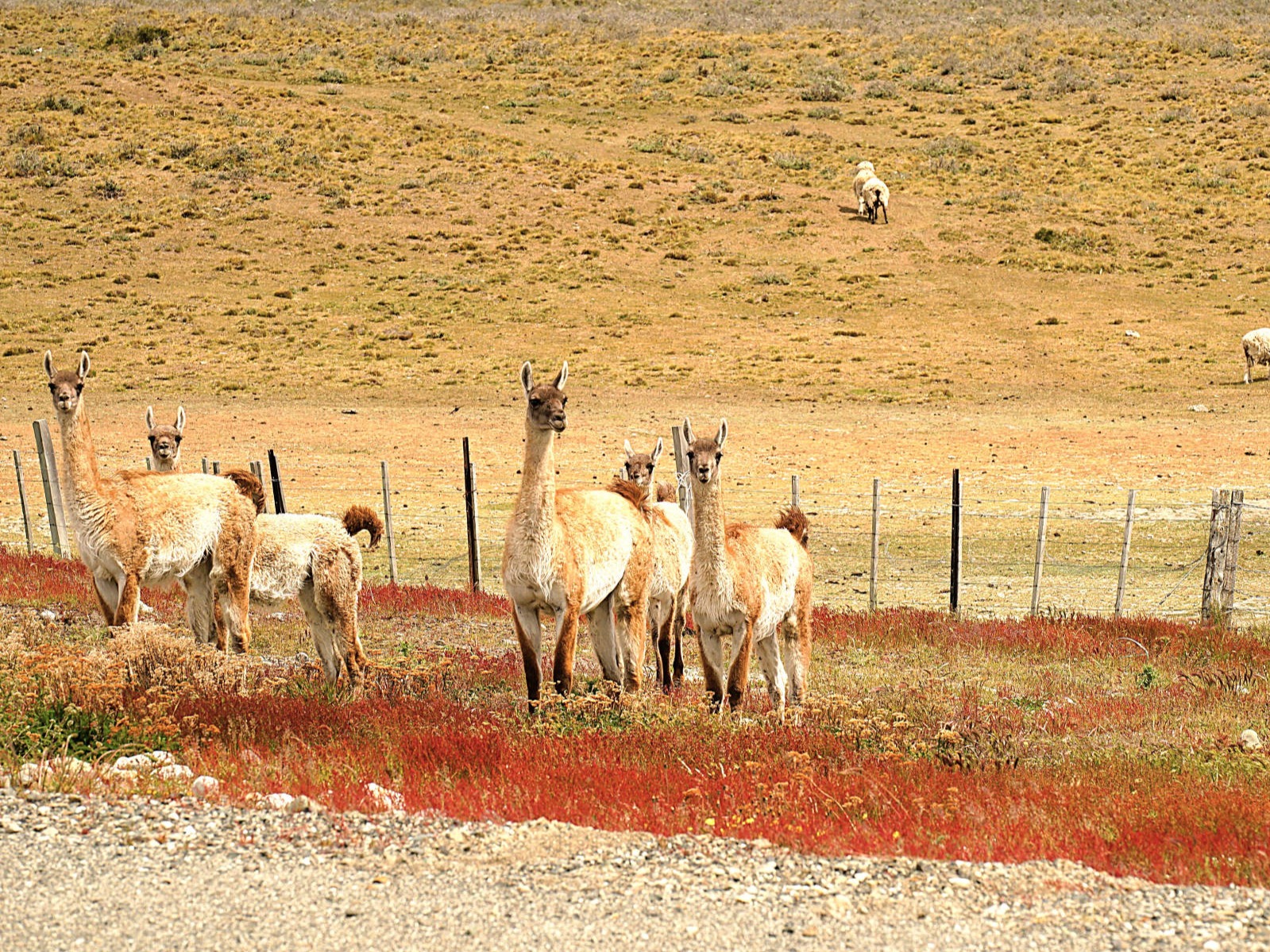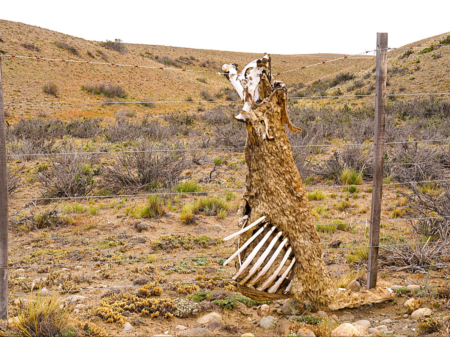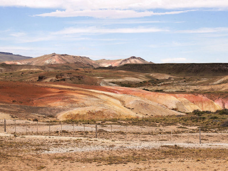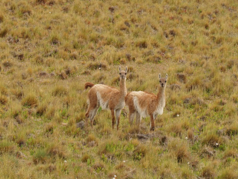 Wir: verlassen "El Chaltén" nahezu bei Windstille und strahlend blauem Himmel. Nur 3 Tage später hören wir, dass weder Motorradfahrer noch Camper oder Busse den Ort wegen des gnadenlosen patagonischen Westwindes verlassen können. Über uns fliegt ein Kondor Pärchen, immer wieder halten wir für "noch ein Foto"... Wieder auf der Ruta Nacional 40, steuern wir die mit Stickern anderer Reisender komplett zugeklebte Tankstelle in Tankstelle in "Tres Lagos" an. In den Foren wird häufig berichtet, dass die Tankstelle kein Benzin vorrätig hätte. Doch wir können unseren Tank gegen Bares sogar mit "Infinita" auffüllen. Vor uns liegen die aus Schotter und Kies bestehenden "Maleditos 73", ein unter Motorradfahrer berüchtigter unbefestigter, 73 km langer Abschnitt der Ruta Nacional 40, der fahrerisch alles abfordert. Wir treffen eine Gruppe brasilianischer Motorradfahrer und versuchen, sie über den Straßenzustand auszuhorchen, Doch fehlendes Internet, unverständliches Portugiesisch und nicht vorhandene Englischkenntnisse seitens der Brasilianer lassen uns ratlos zurück. Schließlich entscheiden wir uns für den etwa 150 km langen Umweg über die Ruta 288 zur "Estancia Julia", einer angeblich weniger tief geschotterten Straße. Wir folgen, bei nahezu Windstille, zuerst einer stark verdichteten Autospur durch das topfebene patagonische Niemandsland mit seinen niedrigen Büschen und gelblichen Gräsern soweit das Auge reicht. Nur Guanakos und einige Nandus fesseln unsere Aufmerksamkeit in der ansonsten eintönigen Landschaft. Der Kies wird immer tiefer und die Autospur löst sich in viele Spuren mit zunehmend weicherem Untergrund auf. Brigitte entdeckt auf der Gegenspur eine besser befahrbare Rinne, als plötzlich der einzige Truck des heutigen Tages mit hoher Geschwindigkeit auf sie zurast. Da er keinerlei Anstalten macht, abzubremsen oder gar auszuweichen, muss sie mehrere hohe Kiesrippen zu unserer Fahrspur überwinden - kein ungefährliches Unterfangen! Doch entschlossen gräbt sie sich knapp vor dem heranbretternden LKW durch die Kieshäufen, dessen Fahrer uns vielleicht wegen des blendenden Gegenlichts nicht wahrgenommen hat? Das war knapp und deshalb sind wir froh, bei der "Estancia Julia" wieder feinen Asphalt unter den Rädern zu spüren. Auch die vor uns liegenden etwa 100 km auf der Ruta 73 nach "Gobernado Gregores" sollten laut Karte unbefestigt sein. Doch auf nahezu perfektem Fahrbahnbelag erfreuen wir uns an skulpturalen und farbigen Felsformationen als Teil der "Cueva de las Manos Provincial Parks", in dem prähistorische Felsmalereien zu besichtigen wären. Doch der schwarze Himmel kündigt Regen an, deshalb kommt der sicherlich besuchenswerte Park auf unsere "To-do-Liste" und wir fahren weiter, um bald darauf die grüne Oase von "Gobernado Gregores" zu erreichen. Bereits in den 1920er Jahren wurde in der Stadt ein Bewässerungssystem mit einem Netz aus Kanälen angelegt, um landwirtschaftliche Flächen und Weideland mit dem Flusswasser des "Río Chico" zu bewässern. Inmitten der ansonsten wüstenähnlichen Steppe Patagoniens grasen Schafe und gedeiht Gemüse. 427 km wollen wir zum "Lago General Carrera" zurücklegen, deshalb verlassen wir frühmorgens das bis auf die Polizei nahezu ausgestorbene "Gregores". Für Stunden durchqueren wir die menschenleere, endlose Steppe auf der Ruta Nacional 40, die über Hunderte von Kilometern beidseitig mit Drahtzäunen begrenzt wird, in denen viel zu häufig die verwesten Gerippe von Guanakos wie stumme Boten in den Drähten hängen. Hinter den Einzäunungen weiden selten Schafe, noch seltener Pferde oder Kühe, und etwa alle 50 Kilometer taucht das Eingangstor zu einer Estancia und danach ein staubiger Weg auf. Hin und wieder überraschen uns kleine Lagunen, an denen meist viele unterschiedliche Arten von Vögeln Zuflucht suchen. Am fernen Horizont tauchen im Dunst schemenhaft die schneebedeckten Andengipfel auf. Tiere wie Guanakos, Nandus, Gürteltiere oder Hasen unterbrechen die Monotonie unseres fast meditativen Dahingleitens. In "Baja Caracoles" steht inmitten der grenzenlose Weite die einzige, ebenfalls mehrschichtig mit Stickern überzogene Tankstelle der Region. Sie scheint, zusammen mit der "Pulperia" (eine Mischung aus Laden, Kneipe und Treffpunkt), einem kleinen Hostel und einem baumlosen Campingplatz, die einzige Einnahmequelle des winzigen Dorfes zu sein. Für Fernreisende ist der Halt an dieser Tankstelle nahezu unverzichtbar. Zu unserer großen Überraschung begegnen wir in dieser grenzenlosen Einöde dem Japaner Naoya, der auf seinem Fahrrad die Welt umrunden möchte und den wir an einer Tankstelle irgendwo in Kolumbien zum ersten Mal getroffen haben. Der Tante-Emma-Laden verkauft zwar viele Souvenirs, aber keine kohlehydratreichen Lebensmittel, weshalb wir dem hungrigen Naoya unsere Notration aus Spaghetti und Chips liebend gerne überlassen. Wir erreichen den gigantisch großen "Nationalpark Patagonia" mit seinen trockenen Steppen, tiefen Tälern, farbigen Hügeln und malerischen Seen. Berühmt ist der Park u.a. für die "Cañadón Pinturas", einer beeindruckenden Schlucht, die vom "Rio Pinturas" geformt wurde und in der sich Natur und prähistorische Kunst aus ikonischer Höhlenmalereien in einer spektakulären Landschaft vereinen. Mit dem Park soll auch das patagonische Ökosystem erhalten und wenn notwendig, wieder hergestellt werden, u.a. durch Eliminierung invasiver Pflanzen, um die ursprüngliche Flora, aber auch Fauna zu fördern. Im malerischen "Perito Moreno" verlassen wir die "Ruta Nacional 40" in der Hochebene der patagonischen Steppe und kurven auf der "Ruta Provincial 43" in Richtung Chile. Bergab steuern wir durch die mit niedrigen Büschen und Grasbüschel sehr karge und oft windgepeitschte Landschaft auf die mächtigen Anden und den von steilen Bergen umgebenen, 1.850 km² großen "Lago Buenos Aires/Lago General Carrera" zu. Sein aufgewühltes türkisfarbenes Wasser schwappt unruhig gegen felsige Klip