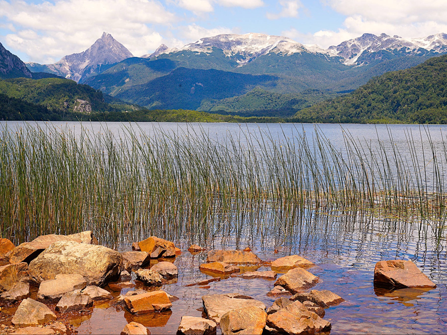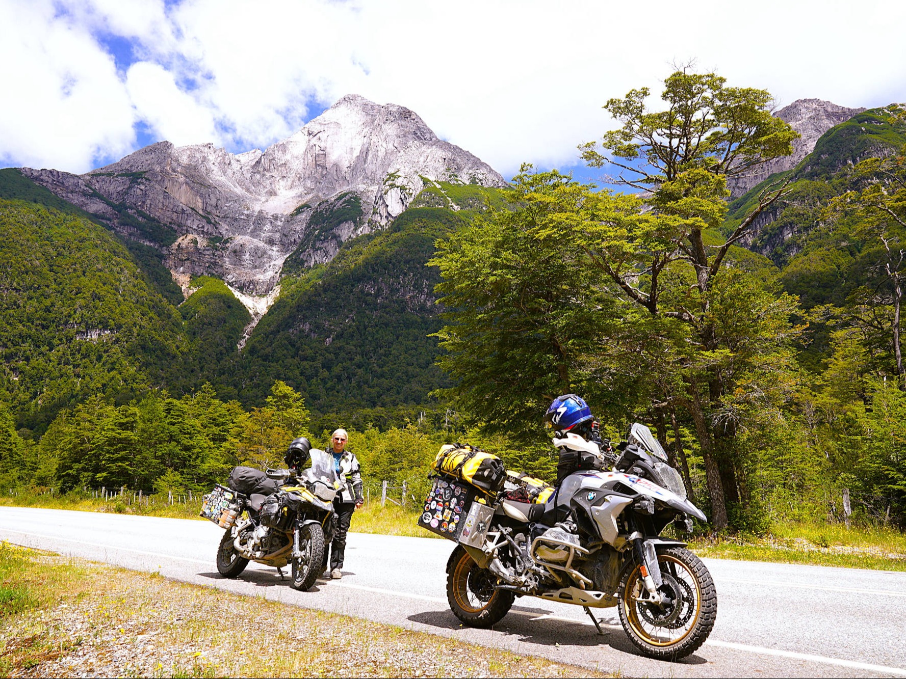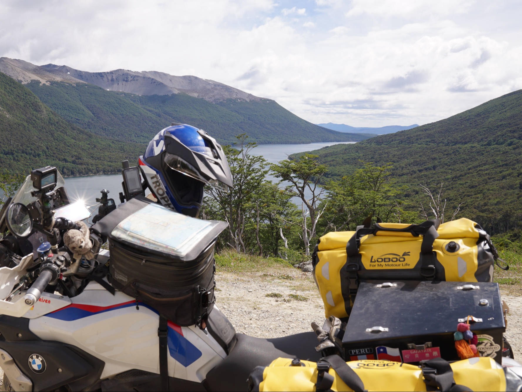 Wir: finden auch nach mehrmaligem Fragen in der Nachbarschaft des völlig heruntergekommenen Gewerbegebiets keine "BM Garage", wo Batterie und Hinterreifen auf uns warten sollen. Erst eine freundliche Mitarbeiterin eines Möbelgeschäftes finden das Unternehmen samt Telefonnummer im Internet. Der höfliche Chef holt uns mit seinem Pickup ab und wir folgen ihm durch mehrere staubige Hinterhofsträßchen zu einer unscheinbaren Halle, die von zwei bedrohlich wirkenden Doggen bewacht wird. Im Inneren entdecken wir mehrere alte BMW's (Fahrzeuge), aber keine Hebebühne. Meine GS steht daher provisorisch auf dem Betonboden der Halle, aufgebockt auf den Hauptständer und rasch wird die defekte Batterie aus und die neu eingebaut. Das schafft Vertrauen, auch wenn die Demontage des Mitas 07 mit 15.050 km Laufleistung weniger effektiv verläuft. Der Pickup verschwindet samt Hinterrad, wir spielen mit den zutraulichen Hunden und warten. Nach knapp einer Stunde kehrt der Pickup zurück und kurze Zeit später ist mein Motorrad wieder reisetauglich. Die Preise sind inklusive 25% Importsteuern mit deutschen durchaus vergleichbar. Nach 5 Wochen kehren wir in ein völlig verändertes "Frutillar" zurück. An dem Anfang Dezember noch leeren Badestrand des "Lago Llanquihue" herrscht jetzt Hochbetrieb, jeder Fleck ist belegt und auch vor den Restaurants bilden sich lange Schlangen von überwiegend chilenischen Feriengästen. Nicht nur wir schätzen "Frutillar" wegen seiner idyllischen Lage am See, der deutschen Kolonialgeschichte und des hohen kulturellen Niveaus, sondern auch für die Chilenen ist es ein beliebtes Reiseziel während der 2-2,5 Monate langen Sommerferien. Wir schlemmen im Biergarten, genießen die entspannte Atmosphäre mit dem nationalen Sommerdrink "Pisco Sour" auf der Theaterterrasse und planen die letzte Etappe nach "Valparaiso", wo wir in zwei Wochen unsere Motorräder abgeben werden. Durch eine ländliche Idylle mit grünen Feldern, Viehweiden, kleinen Dörfern mit alten Bauernhöfen im europäischen Architekturstil und liebevoll gepflegte, blühende Bauerngärten erreichen wir wieder "Entre Lagos". Wir winden uns auf vielen Kurven die sanierungsbedürftige RN 231 hoch und durchqueren den "Puyehue Nationalpark" mit seiner beeindruckenden Kulisse aus Bergen, immergrünen Wäldern und Seen. Die Bäume um den steinigen "Paso Fronterizo Cardenal Samoré" (1.300 m) sind wegen des Vulkanausbruchs des "Puyehue-Cordón Caulle" in 2011 abgestorben und glänzen silbrig-schön im Sonnenlicht. Die Zollformalitäten in Chile sind in wenigen Minuten erledigt. Doch vor der argentinischen Grenze müssen wir uns in eine lange Schlange von Sonntagsausflüglern einreihen. Dichte Wälder, durch die hin und wieder blaues Wasser oder ein schneebedeckter Gipfel blitzt, begleiten uns bis "Villa La Angostura" am nordwestlichen Ufer des "Lago Nahuel Huapi". Die Architektur des touristischen Bergdorfs ist ebenso im alpinen Holzstil gestaltet wie in der Stadt "San Carlos de Bariloche", die uns am gegenüberliegenden Seeufer des "Nahuel Huapi" empfängt. Die Stadt könnte auch einer Alpen-Postkartenidylle der Schweiz entspringen: ihr Beiname, Schweiz Argentiniens, hat mit dem Berg-und-Seen-Panorama, den spitzen Gletschern im Hintergrund, den grünen Wiesen, Zypressen- und Myrtenwälder und den klare Bergseen sowie der alpenländische Chalet-Architektur nach Schweizer Vorbild durchaus seine Berechtigung. Auch punktet das teure Fremdenverkehrszentrum, das etwa 1 Mio. Touristen/Jahr empfängt, mit seiner Schokolade, die entlang der Hauptstraße "Calle Mitre" verkauft wird. Doch "Bariloche" weist durch das "Asyl" für mehrere Mitglieder der SS auch eine sehr unrühmliche Vergangenheit auf, u.a. führte die Deutsche Schule "Bariloche" noch bis Ende der 1950er Jahre AH's "Mein Kampf" in den Regalen. Wir werden überredet, in den roten Gondeln zum 5 km entfernten "Cerro Otto" (1.405 m) hochzuschweben. Der Panoramablick auf die Stadt, die Seen "Nahuel Huapi" und "Gutiérrez" sowie die Anden wäre beeindruckend, doch eine Baustelle um das Drehrestaurant und Herden von Touristen lassen uns rasch zurück in die Stadt und zur neugotischen Betonkathedrale "Catedral de Nuestra Señora del Nahuel Huapi" (1942) mit ihrem ca. 50 m hoher Glockenturm flüchten. Am windigen Ufer naschen wir noch die süße Verführung der örtlichen Schokolade, doch in der aktuellen Ferienzeit ist "Bariloche" einfach zu überlaufen und zu hochpreisig. Wieder sind Berge, Seen, kristallklare Flüsse und spektakuläre Wälder die Essenz der "Ruta de los Siete Lagos", die sich auf 110 km durch die Nationalparks "Lanín" und "Nahuel Huapi" zwischen "Villa La Angostura" und "San Martín de los Andes" schlängelt. Wir machen an einigen Aussichtspunkten Halt, doch Abstecher zu den in dichten Wäldern eingebetteten, blau glitzernden Seen und die Motorräder dabei unbeaufsichtigt zurückzulassen, sind uns zu unsicher. Mehrere Campingplätze liegen direkt am Wasser, deshalb freuen wir uns bereits darauf, diese wundervolle Landschaft mit "Felix" bei besserem Wetter intensiver erforschen zu können. Doch heute ist der Himmel bewölkt, immer wieder tröpfelt es und frierend erreichen wir das gleichfalls sehr touristische "San Martín de los Andes" (960 m) am "Lago Lácar". Die 1898 gegründete Stadt wird stark von europäischen Einflüssen geprägt, insbesondere durch die deutschen und schweizerischen Siedler. Ausgehend vom zentralen "Plaza San Martín" folgen die Straßen dem spanisch-kolonialen, regelmäßigen Rastermuster. Die an alpine Dörfer erinnernden Fassaden sind bis heute entweder aus Holz(-schindeln) oder aus lokalen Steinen mit Holzverkleidung unter Satteldächern und tragen dadurch zu einem harmonischen Stadtbild bei. Mit seinen zahlreichen Souvenir-, Outdoor-, oder Schokoladenläden, Kunstgalerien, Cafés, vielen kleineren Plätzen und seinen von Rosen und alten Bäumen gesäumten Straßen entlang der gepflegten chaletartigen Häusern gehört "San Mart