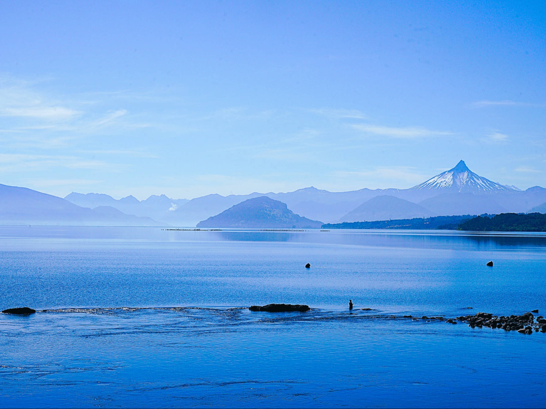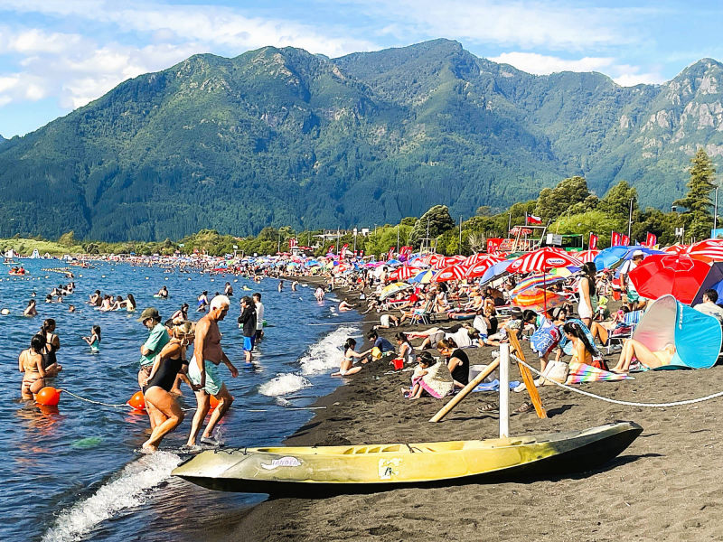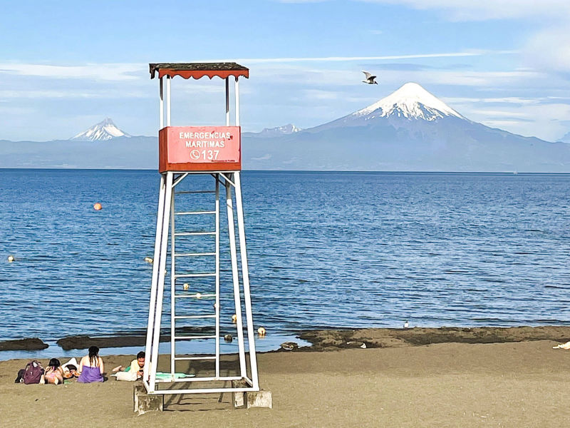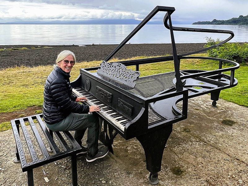 Wir: durchqueren bei kühlen Temperaturen (um 11° C) durch den frischen Wind eine herrliche Seenregion nach "Paillaco", die in eine sehr malerische Landschaft zwischen sanften Hügeln, dichten Wäldern und großen Viehherden auf grünen Weiden eingebettet ist. "Entre Lagos" ist ein pittoreskes Dorf mit farbenfrohen Häusern am Ufer des "Lago de Puyehue" vor der spektakulären Kulisse der Vulkane "Osorno" und "Puyehue". Die außergewöhnlich gepflegte Landschaft weckt Erinnerungen an das Alpenvorland und erklärt auch, warum sich viele Siedler, zumeist aus Deutschland, im 19. Jh. in dieser Region niederließen und zu ihrem wirtschaftlichen Aufschwung beitrugen. Wir überqueren den Ausfluss des alten, tiefblauen Gletschersees "Lago Rupanco" mit den markanten Spitze des Stratovulkans "Cerro Puntiagudo" (2.498) im dunstigen Hintergrund. Wie ein dichter weißer Teppich überziehen abertausende von Margariten die Wiesen. Wir umrunden den aus den Anden gespeisten "Lago Llanquihue", der zweitgrößte See Chiles und lassen uns von den herrlichen Panoramen der Vulkane "Osorno" mit seinem postkartenreifen 2652 m hohen, schneebedeckten Gipfel und "Calbuco" (2.003 m) regelrecht verzaubern. Entlang der kurvigen Straße leuchtet der tiefgelbe Ginster, dahinter glitzert der tiefblaue See mit den schneebedeckten Gipfeln unter azurblauem Himmel. Unsere Herzen tanzen vor Freude, wir erleben ein nachhaltiges Fest für all unsere Sinne, während wir glücklich dahin gleiten. Ab 1846 wurde "Puerto Varas", auch Stadt der Rosen genannt, von deutschen Einwanderern besiedelt, deren Spuren z. B. durch viele historischen Gebäuden aus der Gründerzeit, bis heute sichtbar sind. Uns zieht es jedoch nach " Frutillar Bajo" am Westufer des "Lago Llanquihue", ebenfalls eine sehr deutschgeprägte Stadt, die vor allem durch das kulturelle Angebot mit dem Höhepunkt der "Semanas Musicales de Frutillar" bekannt ist. Das "Teatro del Lago", in dem die Konzerte des Klassik- Festivals von Ende Januar bis Anfang Februar stattfinden, gilt als die südlichste Konzerthalle der Welt. Sie besitzt einen Konzertsaal mit exzellenter Klangqualität (1.178 Plätze), ein Amphitheater (270 Sitzplätze) sowie eine Reihe weiterer Mehrzweck-Salons, Foyers, Ausstellungsbereiche, Proberäume, Konferenzräume etc. Der deutsch-chilenische Geschäftsmann "Guillermo Schiess" initiierte ab 1998- 2010 das 20 Mio. USD teure, moderne Theater, angetrieben von folgender Philosophie: "wenn Menschen und Gemeinschaften Zugang zu den Künsten haben, wird die kulturelle Vielfalt bereichert und das gegenseitige Verständnis gefördert. Dieser Zugang verringert nicht nur kulturelle Unterschiede, sondern fördert auch kritisches Denken, Empathie und Vorstellungskraft und stärkt die Kreativität als wesentliche Fähigkeit für die menschliche und kollektive Entwicklung". Uns begeistert die durchdachte, holzverkleidete Innenraumgestaltung, insbesondere die 800 gebogenen, teils beweglichen Holzpaneele des Saals, die nicht nur ästhetisch ansprechend sind, sondern auch zur außergewöhnlichen Akustik beitragen. Die Außenfassade aus Holzlatten in verschiedenen Farbtönen ist von den mit Holzschindeln verkleideter Lagerhäuser deutscher Einwanderer inspiriert und soll den natürlichen Alterungsprozess nachahmen, eine moderne Interpretation der historischen Architektur, so die architektonische Idee. Nun ja! Unübertroffen ist jedoch die spektakuläre Lage direkt am Ufer des "Lago Llanquihue" mit dem am gegenüberliegenden Ufer mächtigen "Volcán Osorno" als Kulisse. Wir spazieren die hübsche Seepromenade entlang, gönnen uns im "Club Aleman" Schnitzel mit Kartoffelpüree oder im "Biergarten" Schweinerippchen mit Sauerkraut und naschen im "Kuchenladen" Schwarzwälder Kirschtorte. Immer wieder diskutieren wir seit Reisebeginn, ob wir uns an einem der von uns besuchten Ort vorstellen könnten, auf Dauer zu leben. Das kleine, wenn auch sehr touristische und teure "Frutillar" mit seiner reizvolle Umgebung versprüht für uns eine so überzeugende Energie, dass wir seinem Flair erliegen könnten. Anscheinend teilt meine GS 1250 unsere Gefühlslage, denn am Tage der Weiterreise springt sie erst nach mehreren Startversuchen und heftigen Adrenalinschüben meinerseits stotternd an...