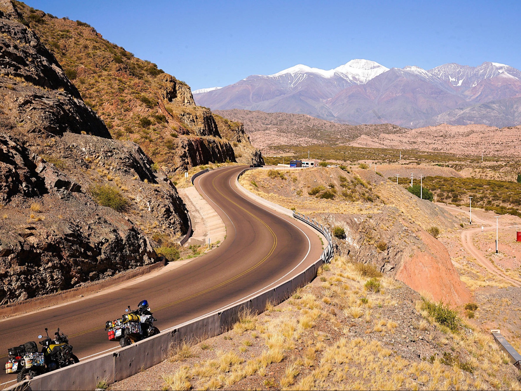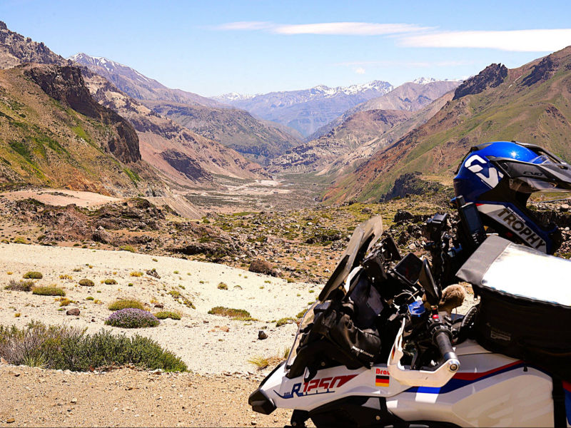 WIR: packen unsere Motorräder für die letzte Etappe. Das ist schon ein eigenartiges und auch wehmütiges Gefühl. Was haben unsere treuen zweirädrigen Gefährten und wir nicht alles gemeinsam erlebt! Das vielleicht letzte Abenteuer beginnt gleich außerhalb von "Mendoza", als wir auf der Ruta 82 doch nochmals durch eine kilometerlange, unbefestigte und sehr staubige Baustelle rollen. Nachdem wir uns etwa 40 km entlang des "Rio Mendoza" durch die Berge geschlängelt haben, überrascht uns nach einer Tunneldurchfahrt der spiegelglatte, wie ein Juwel tief blau schimmernde "Embalse Potrerillos". Der von schneebedeckten Bergen und Zypressenwäldern eingerahmte Wasserspeicher staut den "Rio Mendoza" auf, um etwa 20 % des jährlichen Stromverbrauchs der Provinz "Mendoza" in den zwei Wasserkraftwerken in "Cacheuta" und "Álvarez Condarco" zu erzeugen. Die "Lebensader Río Mendoza" wird vom Schmelzwasser der Anden gespeist und versorgt nicht nur die Städte "Mendoza" und "Luján de Cuyo" mit Trinkwasser, sondern auch die Weinbaugebiete um Mendoza mit dem notwendigen "Nass" in der ansonsten trockenen Halbwüste. Auf der "Ruta Internacional" (Ruta 7) zwischen Mendoza und der chilenischen Grenze folgen wir weiterhin dem "Rio Mendoza" zuerst durch grüne Weinberge und Olivenhaine. Zwischen "Potrerillos" und "Uspallata" (1.750-2040 m), einem Versorgungszentrum für Aconcaguabesteigungen, steigt die Straße kurvenreich in die kargen, felsigen Hänge der Anden empor. Deutlich alpiner mit schroffen, spitzen Gipfeln präsentiert sich die Landschaft nach "Puente del Inca", ein durch Erosion natürlich gebildeter, rotgelb gefärbter, 53.4 m langer und 27,6 m breiter Felsbogen, der in 19,2 m Höhe den Fluss "Río de las Cuevas" überspannt. Das Highlight der Route ist jedoch der Blick auf den kurzzeitig wolkenlosen Gipfel des "Cerro Aconcagua", der mit 6.961 m der höchste Berg Amerikas und der höchste außerhalb Asiens ist. Der Bergführer Matthias Zurbriggen aus Saas Fee erreichte im Januar 1897 als erster den Gipfel. Auch mein Vater hat Ende der 70er Jahre den für die Inkas heiligen Berg erfolgreich erklommen. Durch die extreme Höhe und Sonneneinstrahlung ist er schneeblind geworden und konnte nur mit der Hilfe seines Bergfreundes mühsam zurück ins Tal begleitet werden. Es gibt zwei Routen nach Chile: auf asphaltiertem, aber unglaublich löchrigem Belag durch den "Túnel del Cristo Redentor" oder offroad über zahlreiche Spitzkehren auf den "Paso de la Cumbre" (auch "Paso Libertadores" ) zur Christusstatue "Cristo Redentor de los Andes" auf 3.834 m Höhe. Wir entscheiden uns für Asphalt und fragen uns und andere Reisende, wo denn die Grenze sei? Hinter dem Tunnel, ist die einheitliche Antwort, doch als wir das große Grenzgebäude erreichen, informiert uns der Einweiser, dass der argentinische Grenzübertritt bereits 20 km hinter uns läge. Schlechtgelaunt kehren wir um und entdecken ein imposantes, mit chilenischen und argentinischen Fahnen beflaggtes Gebäude und davor, zu unserem Schreck, eine endlose, mehrspurige Schlange an Fahrzeugen. Der Grenzübertritt könnte Stunden dauern! Zum Glück spricht uns ein freundlicher Zöllner an, der uns darüber aufklärt, dass jedes der zwei Zollgebäude die Aus- und Einreise regle, jedoch in dieser Schlange die Ausreise aus Chile und Einreise nach Argentinien stattfände. Also brausen wir zum dritten Mal über die völlig marode Schlaglochpiste zurück und parken in einer riesigen Halle mit etwa einem Dutzend eingestellter Container, in der die Ausreise aus Argentinien und Einreise nach Chile abgewickelt wird. Trotz der Routine vieler Grenzübertritte fühlen wir uns zwischen diesem Containerwald völlig verloren. Doch die freundlichen Zöllner nehmen uns unter ihre Fittiche, nach der letzten Durchsuchung unseres Gepäcks, dem finalen Check unserer TIP's mit Einreisenummern und der Reisepässe mit Stempeln erwartet uns "Los Caracoles", der "Schlangenpass". Absolut spektakulär windet sich die Ruta CH-60 in 29 engen Haarnadelkurven von 3.200 m durch das extrem steile Gelände der Kordillere in Richtung "Juncal" ins Tal nach "Los Andes" auf 800 m. Jede Kurve ist nummeriert und die Kurve 17, die die meisten Menschenleben gefordert hat, wird als „Curva de la muerte“ (Todeskurve) bezeichnet. Als kürzeste Strecke zwischen dem Hafen von "San Antonio" westlich von "Santiago de Chile" und der Gegend um Mendoza – und weiter bis nach Brasilien – ist die trans-andische Strecke "Los Caracoles" von größter Bedeutung für die Logistik zwischen den Staaten. Waren aus der ganzen Welt, von Bananen aus Ecuador bis hin zu fabrikneuen Autos aus Asien, werden auf dieser gefährlichen und von LKW's heftig frequentierten Straße befördert. Der Wind aus dem Tal weht so kräftig, dass wir uns nicht trauen anzuhalten, um zu fotografieren. Auch auf der nachfolgenden, mautpflichtigen Ruta 60 sind wir extrem böigem Gegenwind ausgesetzt. Wir füllen die Inhalte unserer Ersatzkanister in den 17 l Tank der F 750 GS und müssen trotzdem unterwegs nochmals nachtanken. Am frühen Abend quetschen wir unsere Motorräder zwischen die enggeparkten Autos der mit Glassplitter und Nägeln verunreinigten Hotelgarage in der Hafenstadt "Valparaiso". Uns mit knapp 75.000 km noch einen platten Reifen zu holen, wäre wahrlich fatal...