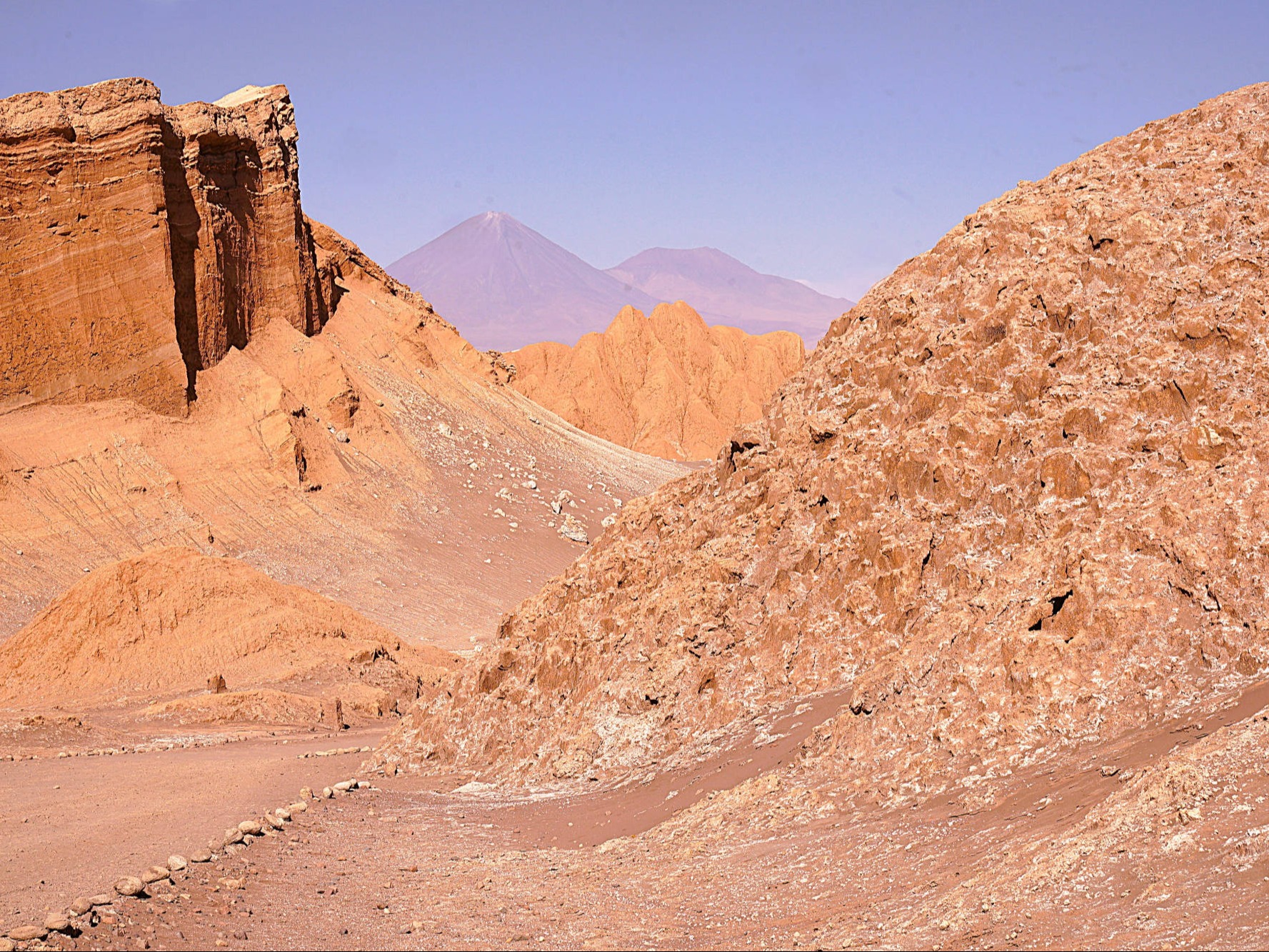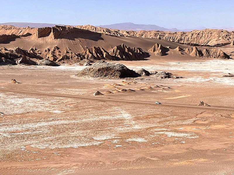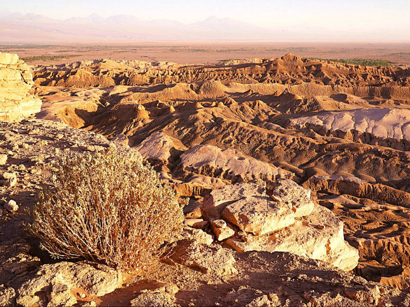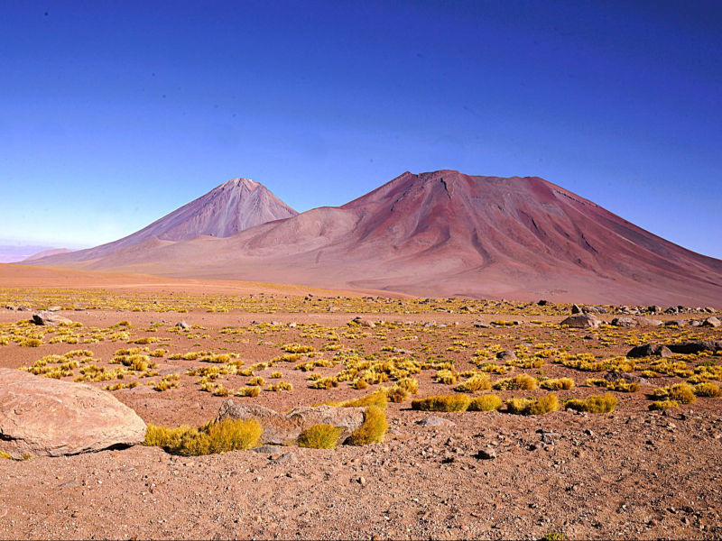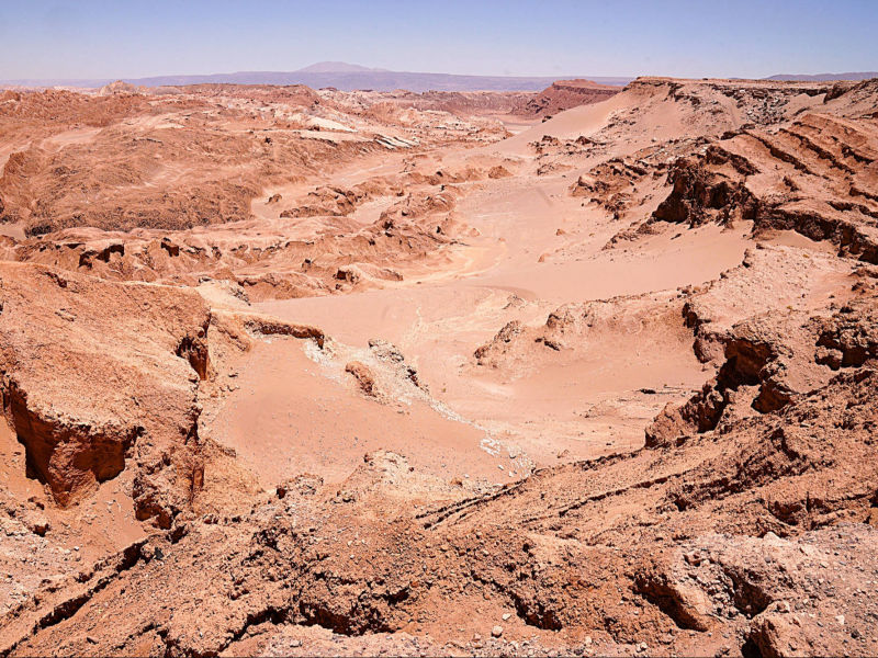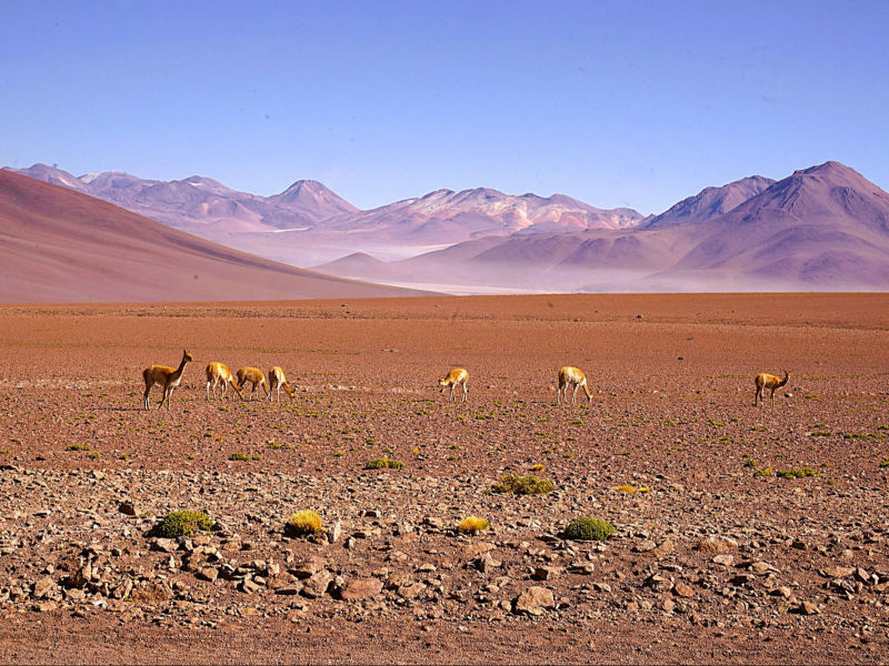 Die Atacama Wüste erhält sehr wenig Niederschlag (<1 mm/Jahr in einigen Regionen). In bestimmten Gebieten hat es seit Jahrzehnten nicht mehr geregnet. Die Wüste ist eine einzigartige Landschaft mit Salzseen, Vulkanen, Sanddünen und faszinierenden Felsformationen (u.a. das "Valle de la Luna"). Trotz der extremen Bedingungen überleben in der Atacama eine Vielzahl von Pflanzen und Tieren, die sich an die Trockenheit angepasst haben. Aufgrund der klaren Himmel und der geringen Lichtverschmutzung ist die Atacama ein beliebter Standort für astronomische Observatorien. Die Region hat eine reiche Geschichte, die von indigenen Völkern wie den "Atacameños" geprägt ist. Es gibt viele archäologische Stätten, die Einblicke in die Kultur und Lebensweise dieser Völker geben. San Pedro de Atacama ist ein malerisches, touristisch überlaufendes Dorf in der Wüste.