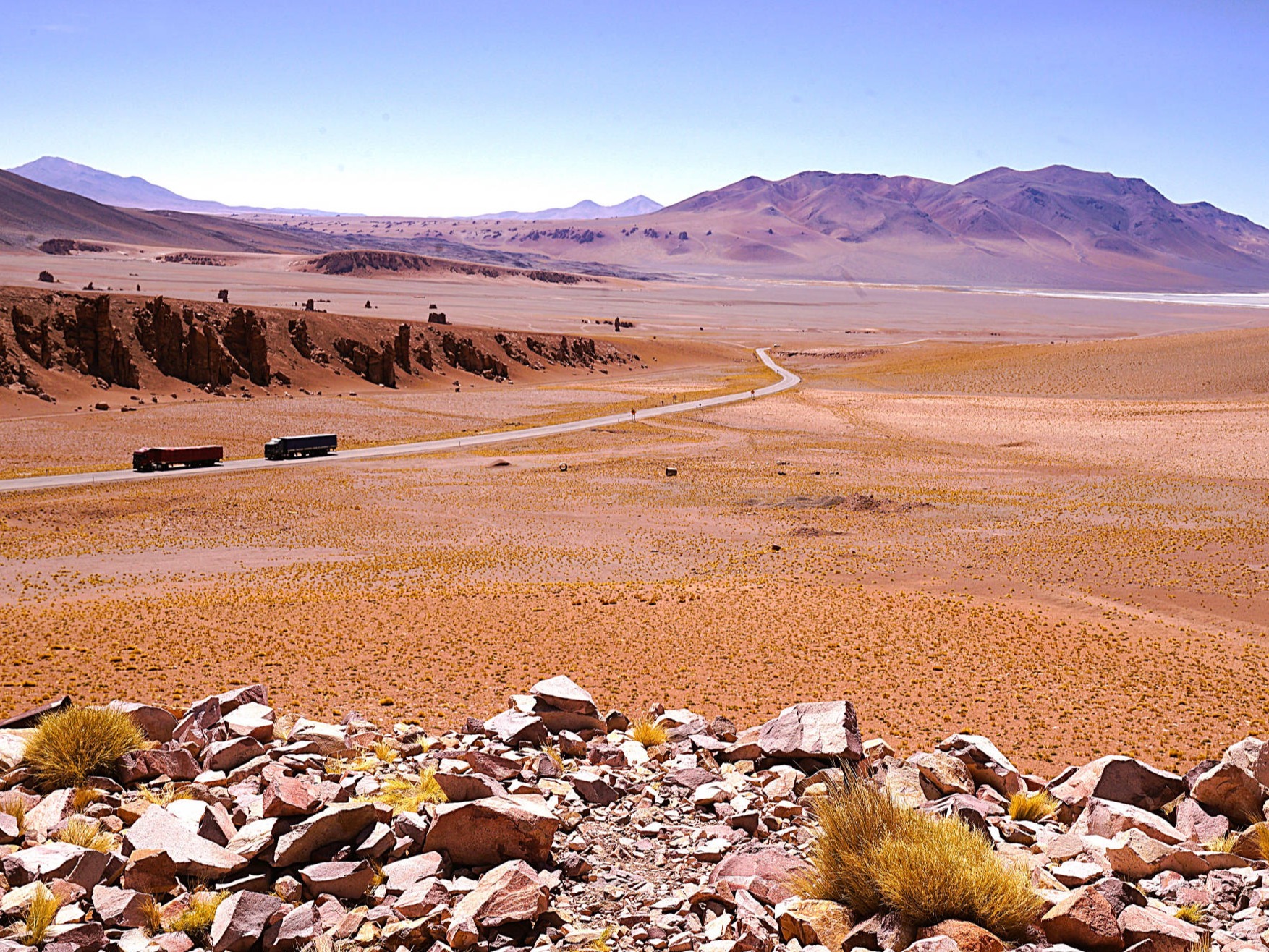 Der Jama Pass ist ein bedeutender Grenzübergang in den Anden zwischen Chile und Argentinien. Er liegt auf einer Höhe von etwa 4.200 m und verbindet die chilenische Region Antofagasta mit der argentinischen Provinz Jujuy. Der Pass bietet wirklich atemberaubende Ausblicke auf die umliegenden Anden mit beeindruckenden Berglandschaften, Vulkanen und Salzwüsten.