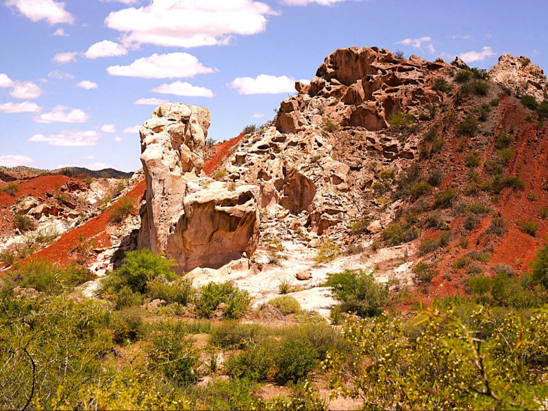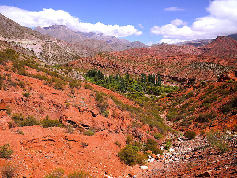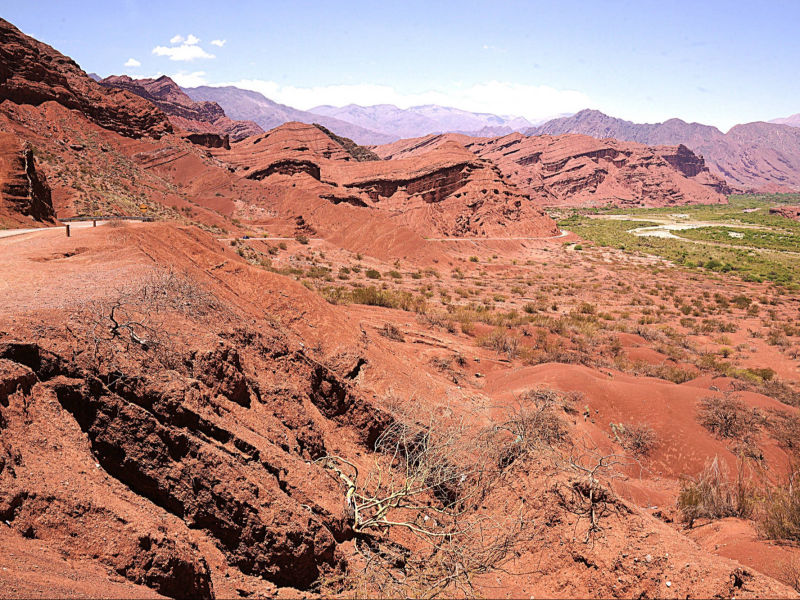Die Quebrada de las Conchas, ca. 60 km südlich von Salta und kurz vor dem schnuckeligen Weindorf "Cafayate" ist eine beeindruckende Schlucht in der Provinz Salta. Sie gehört zu den wohl spektakulärsten Natursehenswürdigkeiten Argentiniens. Ihre einzigartigen geologischen Formationen sind durch Erosion und Wind über Millionen von Jahren entstanden sind. Die charakteristischen rötlichen Felsen und Böden stellen eine wirklich atemberaubende Kulisse dar. Die markanten Farben stammen hauptsächlich von oxidiertem Eisenoxid innerhalb der verschiedenartigen Sedimentgesteine. Ein sehr trockenes Klima und wenig Vegetation tragen zur Erhaltung der Farben bei. Zu den bekanntesten Formationen gehören die fantastische „Garganta del Diablo“ (Teufelsschlucht), die „Tortuga“ und die „Silueta del Hombre“.