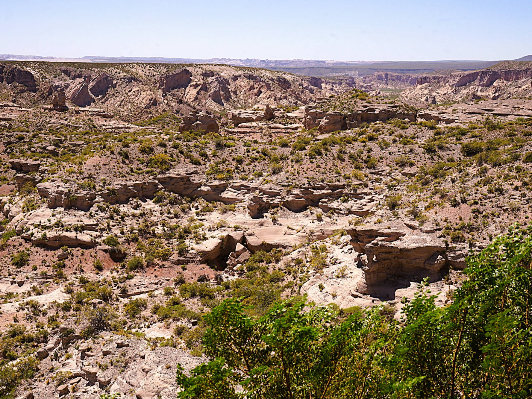 Wir: durchqueren zuerst atemberaubende Schluchten und Berge in sanften Rottönen, später die topfebene, wüstenhafte Hochebene "Campo de Belén", in der wir gegen heftige Windböen ankämpfen müssen. Anschließend schlängelt sich die "Ruta Nacional 40" durch das mit Kakteen bewachsene Tal des "Río Santa María". Kurz vor "Belén", das für seine qualitätvolle Teppichwebereien bekannt ist, prägen weite Täler einer kargen, aber faszinierenden Wüstenlandschaft mit roten Felsformationen und Steppen sowie der beeindruckende "Monte Catamarqueno" die Landschaft. Auf schnurgerader Strecke fotografieren wir uns am Schild: „Kilometer 4040“ der "Ruta Nacional 40". Die 4.040 km bis zum Leuchtturm vom "Cabo Vírgenes" an der Atlantikküste bei "Río Gallegos" führen uns die vielen Kilometer vor Augen, die in den kommenden 4 Wochen bis Ushuaia noch vor uns liegen werden. Nach dem ebenfalls mit Kakteen bewachsenen, trockenen Tal des "Rio Abaucán" begleiten uns endlich wieder grüne Weinberge, Olivenhaine und Obstplantagen. Wir fahren an vielen Gedenkstätten der "Difunta Correa" zu Ehren von "María Antonia Deolinda y Correa" vorbei, die 1841 auf der Suche nach ihrem Mann angeblich in der Wüste Argentiniens verdurstet ist. Ihr Kind jedoch war dank der Muttermilch nicht gestorben, es lag saugend an der Brust der toten Mutter. Vor allem gläubige LKW-Fahrer bitten darum, sicher ans Ziel zu gelangen und verehren sie als Schutzheilige der Reisenden mit kleinen Schreinen und Unmengen an gefüllten Wasserflaschen für die Verdursteten. Ebenso häufig entdecken wir kleine Schreine mit roten Fahnen, die dem sehr populärer Volksheiligen "Gauchito Gil" gewidmet sind. Der Landarbeiter "Antonio Mamerto Gil Núñez" geriet wegen eines echten oder angeblichen Verhältnisses mit einer reichen Witwe in große Schwierigkeiten. Deshalb schloss er sich der Armee an und kämpfte im "Tripel-Allianz-Krieg" gegen die Streitkräfte Paraguays. Im späteren argentinischen Bürgerkrieg desertierte er, um nicht eigene Landsleute umbringen zu müssen. Nach manchen Legenden war er in dieser Zeit so etwas wie der argentinische Robin Hood – bestahl die Reichen und gab das Geld den Armen. Als er gefangen wurde, teilte "Gauchito Gil" seinem Henker mit, dass sein kranker Sohn gesund würde, wenn er zu ihm betete. Der Sohn wurde tatsächlich gesund, daraufhin errichtete der Henker ein kleines Heiligtum und erzählte allen Leuten vom wundersamen "Gauchito Gil". Heute gilt er als Patron von Auto-, Bus- und Lastwagenfahrern, die hupen, wenn sie an einem Schrein vorbeifahren, um im Gegenzug auf eine unbeschwerliche und unfallfreie Reise zu hoffen. "Chilecito" (1715) liegt auf 1.076 m in einem breiten Tal zwischen der bis zu 4.920 m hohen "Sierra de Velasco" im Osten und der bis zu 6.250 m hohen "Sierra de Famatina" im Westen. 200 Stufen, die an 200 Jahre argentinische Unabhängigkeit erinnern, führen zu dem in Weiß erstrahlenden, eher grimmig dreinblickenden 16 m hohen "Cristo del Portezuelo" hinauf, von dessen Plattform aus wir einen herrlichen Blick auf die umgebende Landschaft genießen. Der spektakuläre Abschnitt der legendären "Ruta Nacional 40" windet sich zwischen "Chilecito" und "Villa Unión" auf den 2.000 m hohen Gebirgspass "Cuesta de Miranda" hoch und durchquert dabei das bis zu 6.200 m hohe "Fatamina-Gebirge". Dessen Berge sind reich an Gold, Silber, Kupfer und Wismut. Diese wertvollen Bodenschätze werden aus zahlreiche Minen wie "San Tomas del Espino", "Santo Domingo" oder "La Mejicana" gefördert. Uns beeindrucken jedoch eher die atemberaubende Ausblicke auf die roten Berge, die ihre markante Farbe dem hohen Gehalt an oxydiertem Eisenoxyd in den Sedimentsteinen zu verdanken haben. Die Region war einst Teil eines urzeitlichen Flusssystems, das Sedimente in unterschiedlichen Schichten ablagert, die sich heutzutage in den vielfältigen Farbvarianten abbilden - ein typisches Merkmal vieler Gebiete im Nordwesten Argentiniens. Nachdem wir die Bergregion verlassen, prägt wieder eine trockene, aride rötliche Landschaft mit Büschen und Kakteen auf sandigem Boden diese Zone, die zur "Monte-Halbwüste" gezählt wird. Selten wird sie durch kleine Oasen mit Ansiedlungen wie "Guandacol" oder "Villa Unión" unterbrochen. Die kerzengerade Route ist in ihrer Einsamkeit und scheinbar unendlichen Ausbreitung sehr beeindruckend und bietet einen reizvollen Kontrast zu den bewaldeten oder landwirtschaftlich genutzten, Gebieten weiter südlich. Mal wieder geht unser Benzin zur Neige und der Blick auf die "Tanknadel" macht uns zunehmend nervöser. Mitten in dieser Unendlichkeit kreuzen sich in "Santa Clara" plötzlich zwei Straßen, von denen eine zu den "Termas de El Palmar" führt und die zwei Zapfsäulen erklärt. Kurz vor "San José de Jáchal" verlassen wir die "Ruta Nacional 40", um über die kurvige Bergstraße "Routa 491" auf die Felsformation "Sillón del Gigante", einem großen, sitzähnlicher Felsen, der an einen riesigen Sessel erinnert, zu stoßen. Vom darüberliegenden Mirador entfaltet sich ein fantastischen Blick zurück über die bunte Felslandschaft mit dem braunen meandernden Flusstal und den grünen Oasen, die wir heute durchquert haben. In "San José de Jáchal" plagt uns der Hunger, aber kein Restaurant öffnet vor 19:30 Uhr. Immerhin zügeln flüssige Kalorien am "Plaza San Martin" die ersten Heißhungerattacken. Es ist Schulschluss und Horden von Schulkindern in weißen Hemden/Blusen, blauen Hosen/Röcken und weißen Strümpfen amüsieren sich, stets das Smartphone greifbar, auf dem Hauptplatz. Wird ihnen die aktuelle Politik des ambitionierten argentinischen Präsidenten "Javier Milei" mit seinen radikalen wirtschaftlichen und unkonventionellen politischen Herangehensweisen eine hoffnungsvollere Perspektive eröffnen? Wir passieren die "Sierras Pampeanas", eine Kette niedriger, "zerknittert" aussehender Berge, die mit Buschwerk und Kakteen bedeckt sind. Den "Rio Jáchal" begleitet ein grüner, frucht