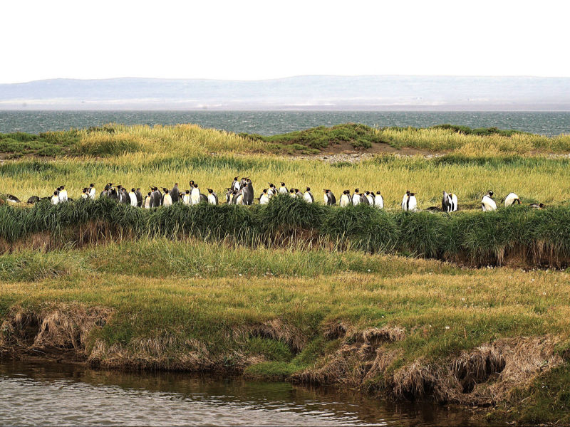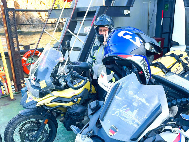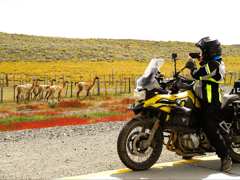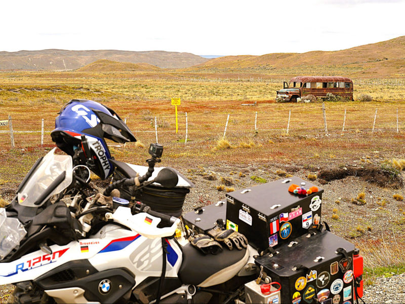 Wir: verlassen "Puerto Montt" mit seiner wunderschönen Kulisse der schneebedeckten Vulkane "Calbuco" und "Osorno" und schippern ruhig durch den von den Inseln des "Chiloé-Archipels" geschützten "Golfo de Ancud". 4 Tage und 3 Nächte dauert die Fährfahrt durch die Fjorde des südlichen Chiles. Nach dem "Canal Moraleda" tanzt die schwere Fähre bei Nacht durch das stürmische, offene Meer des "Golfo de Penas", bevor es wieder in den Schutz der Inselwelt zurückkehrt. Am 2. Tag durchfahren wir den mit 1.270 m tiefsten Kanal "Messier" und lauschen den Legenden, die sich um den Frachter “Capitán Leonidas” drehen, der in den 1970er-Jahren auf dem halb versunkenen Eiland “Bajo Cotopaxi” aufgelaufen ist. Wenig später kreuzen wir die Engstelle "Angostura Inglesa" und erreichen die kleine Fischersiedlung "Puerto Edén", in der die letzten Ureinwohner des Volks der "Alakalufen" leben. Am Morgen des 4. Tages manövriert der Captain im Santa María-Kanal die 10-15.000 Tonnen schwere "Estanzia" durch die nur 80 m breite Engstelle "Angostura White" mit der Marienstatue, bevor wir den Union-Sund und wenig später den Einfahrtskanal zur Stadt "Puerto Natales" erreichen. Das Anlegen im Hafen gestaltet sich wegen des starken patagonischen Windes als schwierig, mehrere Stunden kreuzen wir vor der Hafenstadt, bis der Kapitän die schwere Fähre am Betonquai verankern kann. Wir haben uns auf das langsame, aber stetige Gleiten durch diese spektakuläre, raue Landschaft der patagonischen Kanäle, vorbei an unberührten, mit Südbuchen und Patagonische Zypressen üppig bewaldete Inseln besonders gefreut. Die dichte Bewölkung, stürmischer Regen und eine niedrige Wolkendecke lässt uns die Schönheit entlang dieser grandioser Bergpanoramen durch die atemberaubenden Fjordlandschaft leider nur erahnen. Auch die Tierwelt macht sich rar: neben vielen unterschiedlichen Vogelarten zeigt sich kurz eine Gruppe Delphine, die Wale haben schon vor uns den Süden erreicht. Trotzdem entspannen wir uns bei gutem Essen, informativen Vorträgen zur Route, zur Flora und Fauna sowie bei netten Gesprächen mit den Mitreisenden aus aller Welt. "Puerto Natales" ist Ausgangsbasis für Exkursionen in die Nationalparks "Torres del Paine" und "Bernardo O’Higgins" sowie für Feuerland- und Patagonien-Touren. Neben Fischfang gehört deshalb der Tourismus zu den Haupteinnahmequellen. Um den zentralen "Plaza de Armas Arturo Prat" reihen sich Restaurants, Outdoor Shops, Souvenirläden, Reisebüros oder Kneipen dicht an dicht. Trotzdem gefällt uns die heimelige Atmosphäre des überschaubaren, sympathischen Ortes. Die ganze Nacht über hat der berüchtigte Sturm gewütet, dem wir auf der flachen patagonischen Steppe mit ihrer kargen Gras- und Buschlandschaft und kleinen Lagunen hilflos ausgeliefert sind. Weit lehnen wir uns den Böen entgegen, um nicht mitsamt dem Motorrad weggeblasen zu werden. Die vielen Schafe kuscheln sich schutzsuchen in einem großen Knäuel zusammen, nur die durch ihr graues Federkleid fast unsichtbaren Nandus trotzen der Naturgewalt gänzlich unbeeindruckt. "Puerto Arenas" liegt im äußersten Süden des Landes an der Magellanstraße und an der Ostküste der Brunswick-Halbinsel. Zunächst Strafkolonie, erfuhr sie einen ersten großen Aufschwung während des kalifornischen Goldrausches, als sie als Anlaufhafen für die Klipper-Schiffe diente. "Punta Arenas" stellt eine bunte Mischung verschiedener Kulturen und Menschen dar. Wir besuchen den "Cementerio Municipal Sara Braun" und sind erstaunt, viele deutsche, aber auch englische oder kroatische Grabinschriften zu entdecken, die von der facettenreichen Einwanderungsgeschichte der Stadt zeugen. Auf der "Plaza de Armas" steht ein Denkmal für Ferdinand Magellan, zu dessen Füßen zwei geschlagene Indigene hocken. Wir berühren den großen Zeh eines Indigenen, was der Sage nach eine Rückkehr in die Stadt sicherstellt. Spaziergänger, Radfahrer und Jogger beleben die breite Promenade "Costanera des Estrecho" oder lassen sich vor dem berühmten Magellan-Denkmal oder dem Punta Arenas Schriftzug ablichten. Auf Spielfeldern wird Basket-, Fußball oder Rollschuh-Hockey gespielt. Viele Gebäude im viktorianischen Stil sind weihnachtlich geschmückt, amerikanische Weihnachtssongs dudeln auch in unserer Trattoria, die wohl in Reiseführer empfohlen wird, da ausschließlich "Gringos" die italienischen Delikatessen mit dem kühlen Fassbier genießen. Wir besorgen uns Fährtickets und stehen am Morgen pünktlich um 7:00 am Fährhafen von "Tabsa Terminal Tres Puentes". Mehrere Overlander aus Frankreich und Italien haben auf einem kleinen Parkplatz die Nacht im Hafen gecampt. Ob wir hier auch einmal nächtigen werden? Vorsichtig manövrieren wir unsere Motorräder über die glitschige Rampe auf das Parkdeck der stark schwankende Fähre. Zwei Stunden schaukeln wir bei hohem Wellengang durch die Magellanstraße, bis wir im Hafen "Bahía Chilota" zum ersten Mal den Boden "Feuerlands" betreten. Nach wenigen Kilometern erreichen wir die 1894 von kroatischen und chilotischen Goldsuchern gegründet Siedlung "Porvenir". Inmitten ihrer traditionellen, teils bunt bemalten Holzhäuschen könnte man meinen, die Zeit sei stehen geblieben. Wir wollen ein Stück der neu asphaltierte Straße Y-65 nach "Carencia" folgen und entdecken unterwegs große Herden von Guanakos, einer wildlebenden Art innerhalb der Familie der Kamele, die direkt an der Straße grasen. Der Motorenlärm unserer BMWs scheint sie besonders zu erschrecken und lässt sie elegant über die Zäune flüchten, die sich zur Markierung des Eigentums oder zum Schutz des Viehs beidseitig der Straße entlangziehen. Die oberste Drahtreihe besteht immer aus Stacheldraht, der einem jungen Guanako zum Verhängnis wird: mit seinen Hinterläufen bleibt es in den Widerhaken hängen und zappelt verzweifelt, um sich zu befreien. Brigitte fährt panisch in die endlose Ebene hinein in der irrealen Hoffnung, möglicherweise einen Viehzü