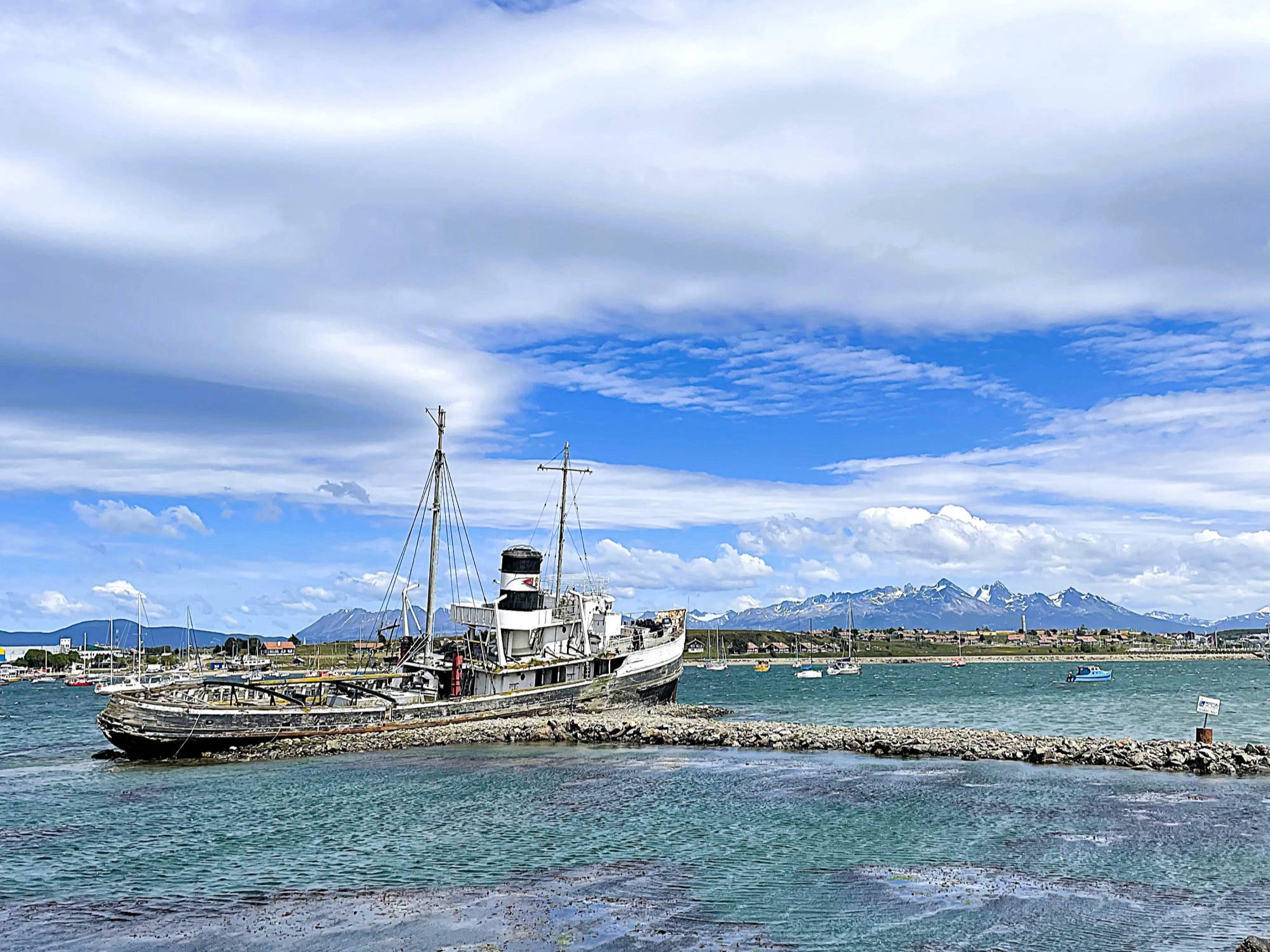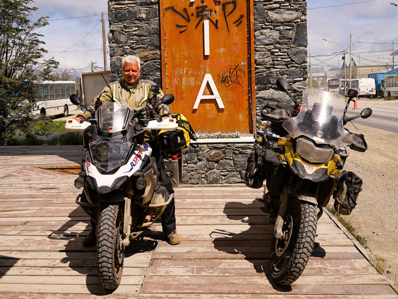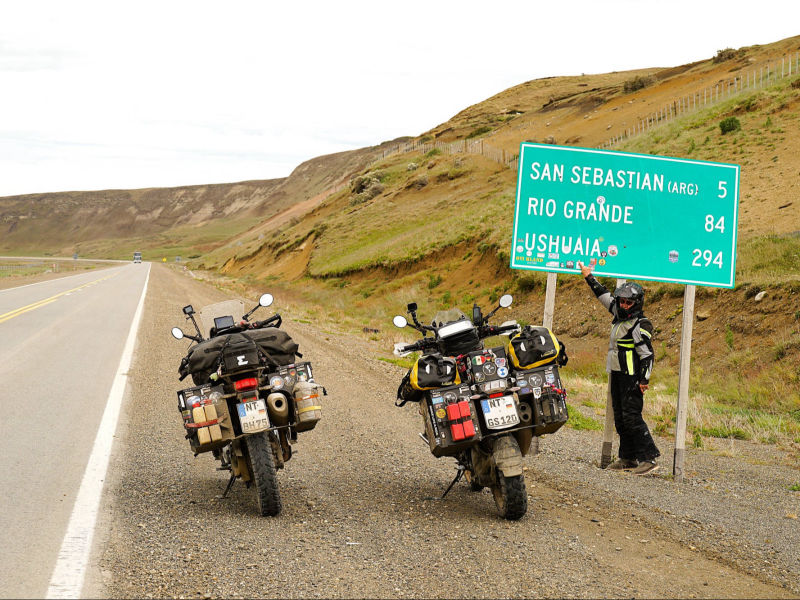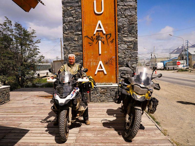 Wir: erreichen Ushuaia (ca. 83.000 Ew.), die südlichste Stadt der Welt (Puerto Toro ist der südlichste dauerhaft besiedelte Ort der Welt) am 18. Dezember 2025. Die argentinische Siedlung "Puerto Almanza", 75 km südöstlich von Ushuaia, ist der südlichste, mit geländetauglichen Fahrzeugen über die malerische Küstenstraße "Corredor Costero del Canal Beagle" erreichbare Ort. Noch südlicher liegt die Estancia Moat, die südlichste Schaffarm der Welt, die wir über die ca. 130 km lange Ruta J durch abgelegene und landschaftlich beeindruckende Gebiete entlang des Beagle Kanals am 23. Dezember 2024 mit unseren Motorrädern erreichen. Nach Deadhorse/ Prudoe Bay, Alaska (24. Juli 2022) dem nördlichsten Punkt der Reise sind wir nach 53.971 km am südlichsten mit Motorrädern anfahrbarem Ort gesund, unfallfrei, glücklich und stolz angekommen.