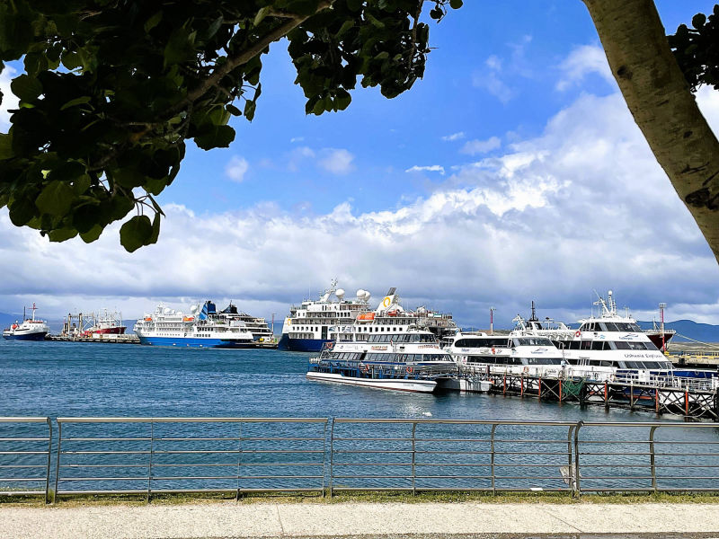 Wir: trödeln an Heiligabend im Bett herum, telefonieren mit unseren Motorradfreunden Sabine und Steffen in Rottenburg, die uns das Hostel "Rodolfos Motoposada Las Piedras" empfohlen haben und schicken unsere digitalen Weihnachtsgrüße zu alten und neuen Freunden in der ganzen Welt. Unser winziger, leicht demolierter hölzerner Weihnachtsbaum vom Weihnachtsmarkt in Ulm, der uns seit 3 Jahren begleitet, wird von einer Kerze in ein warmes, heimeliges Licht getaucht. Wir freuen uns über den Sonnenschein und den schwachen Wind und schlendern planlos am Beagle-Kanal entlang. Auf einer Bank bei den Overlandern lümmeln wir herum und beäugen eher kritisch die großen Kreuzfahrschiffe. Wir reden über die zurückliegenden spannenden 1,5-Reisejahre seit Los Angeles und phantasieren über die Zukunft mit "Felix". Natürlich vermissen wir an Heiligabend unsere Familien und Freunde, doch nach all spannenden Abenteuern der letzten 15 Monate und der unfallfreien Ankunft an unserem so langersehnten Ziel am südlichen Ende der Welt, sind wir an diesem besonderen Tag auch mit einer große innere Zufriedenheit erfüllt. Wir vertrauen der KI, dass die Restaurants an Heilig Abend geöffnet sind und die Argentinier im großen Familienverband dort ausgelassen feiern werden. Doch die Stadt wirkt verwaist, die meisten Restaurants sind geschlossen und die wenigen offenen sind ausgebucht. Unsere anfänglich erwartungsvolle Vorfreude auf ein feierliches Weihnachtsasado trübt sich zusehends ein. Am Ende zahlen wir sogar eine Eintrittsgebühr in die "Brewery Patagonia Company", um nicht hungrig heimkehren zu müssen. Während amerikanische Weihnachtslieder und lautes Stimmengewirr den Raum mit der tollen Aussicht über den Beagle-Kanal erfüllen, verspeisen wir gierig unsere Hamburger und genießen das süffige, selbstgebraute Bier. Wir sind nicht die einzigen Gestrandeten: in fröhlicher Stimmung reden alle Gäste sprachlich bunt durcheinander, Unbekannte werden umarmt, temporäre Freundschaften geschlossen. Was für ein unerwartet fröhlicher Heiligabend am "Ende der Welt"!