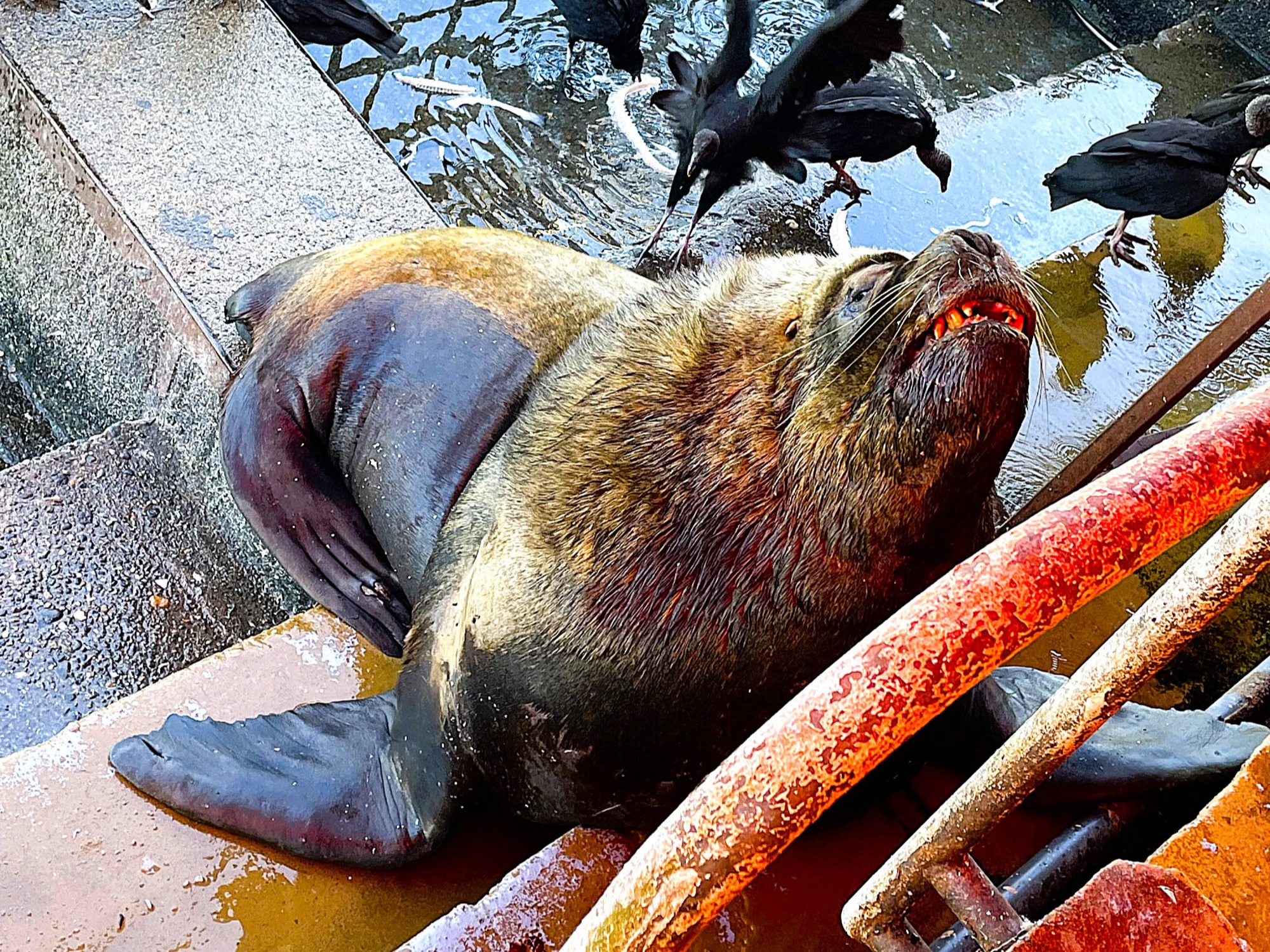 Wir: spüren auch während der Busfahrt, dass wir kaum noch aufnahmefähig sind. Auf der Ruta 68 durchqueren wir das malerische "Valle de Casablanca", in dem exquisite und preisgekrönte Weine aus den Chardonnay und Sauvignon Blanc Trauben produziert werden. Der Bus transportiert uns durch die sanften Hügel der Küstenkordillere mit großen Olivenplantagen, bevor er in den Tunnel "Lo Prado" eintaucht. Doch die Landschaft fliegt vorbei, ohne dass wir ihr noch allzu große Aufmerksamkeit schenken. Das Metrosystem überzeugt wieder einmal durch Simplizität: wir kaufen uns eine Karte, laden sie auf und effizient landen wir mit den Linien 1 + 4 in der Station "Quilin". Ich rufe meinen Schulfreund Claus-Peter ("CP") an, der keine 500 m entfernt in einer "Gated Community" der Gemeinde "Peñalolén" wohnt. Die prosperierende Kommune weist eine breite Mittelschicht auf, auch wenn weiterhin die sogenannten „poblaciones“ (Armenviertel) einen prägenden Bestandteil des Ortes einnehmen. Das erklärt, warum nicht nur der Wohnkomplex aus mehreren 2-geschossigen Einfamilienhäusern, sondern auch jedes einzelne Gebäude mit hohen Zäunen und Kamera bewacht umschlossen ist. Wir werden von Claus-Peter's Frau Martha, Tochter Natalie und Schwiegermutter Cristina empfangen und die nächsten 9 Tage mit einer überwältigenden Gastfreundschaft getragen und berührender Herzlichkeit umsorgt. Jeden Morgen steht das fertig gerichtete Frühstück mit selbstgebackenen Laugenbrötchen auf dem Tisch, am Abend überrascht uns der Hobbykoch CP mit immer neuen kulinarischen Kreationen. Zusammen mit CP fahren wir mit der Metro zur "Plaza de Armas de Santiago", Schmelztiegel von Geschichte, Kultur und Leben, gleichzeitig auch Kern des historischen Zentrums der Hauptstadt Chiles. Wir besichtigen die historische "Catedral Metropolitana de Santiago" (1775), das Hauptpostamt, das Nationale Historische Museum und die berühmte Stadtverwaltung von Santiago. Wir bummeln durch die belebte Einkaufsstraße "Paseo Puente" zum "Mercado Central", unter dessen gusseiserner Markthallenstruktur, die im Juni 1984 zum nationalen historischen Denkmal erklärt wurde, insbesondere Fische und Meeresfrüchte angeboten werden. Die gastronomischen Angebote locken nicht nur uns, sondern auch viele andere Touristen an, die sich von der typisch nationalen Küche Chiles verwöhnen lassen wollen. In CP's Lieblingsrestaurant "Pailas Blanca" teilen wir uns als Vorspeise ein "Cerviche de marisco", als Hauptspeise schlemmen wir "Pescado reineta" bzw. "Marisol PinPin" und trinken dazu einen herrlich kühlen Sauvignon Blanc aus dem "Valle de Casablanca". CP stellt uns seinen Freund Mathias vor, mit dem er in den 80er Jahren einen Unimog von "Toronto, Kanada" nach "Santiago de Chile überführt hat, um sich anschließend aus Liebe für immer in dieser Stadt niederzulassen. Mathias Vater gehörten einst über 6.000 Hektar, von denen 3/4 unter der Militärdiktatur von Augusto Pinochet 2/3 enteignet wurden, um u.a. das stadtnahe Skigebiet "Farellones" zu vergrößern. Der Vater verdiente sein Geld mit dem Verkauf und Wartung von Unimogs. Mathias bewohnt das Haus seiner Großeltern auf dem immer noch stattlichen Grundstück von 2.000 Hektar, die sich immerhin noch über zwei Höhenrücken erstreckten. Gerd, deutschstämmiger Argentinier aus "Buenos Aires", gibt sein Bestes, aus einem schlecht abgehangenen Stück Rindfleisch aus Mathias Rinderherde ein "Asado" zu grillen. Wir mühen uns mit jedem Bissen redlich ab und spülen die zähe Schuhsohle mit viel Rotwein und anzüglichen Witzen in fröhlichen Runde runter. Wir sind für diese Ablenkung durch die gut gelaunten, deutschstämmigen Chilenen sehr froh, denn seit Abgabe unsere Motorräder verspüren wir einerseits Erleichterung vermischt mit Trauer, andererseits aber auch eine große Energielosigkeit. Bei CP stehen wir jedoch unter keinerlei Leistungsdruck, wir schlafen lange, plantschen gemütlich in seinem kleinen Swimmingpool im Minigarten, nippen "Pisco Sour" am Beckenrand oder verfolgen die Fußballspiele des VBF Stuttgart auf Sky. Noch einmal raffen wir uns auf und besuchen den beliebten Aussichtspunkt "Cerro Santa Lucía" mit seinen Denkmälern, seiner kolonialer Architektur und dem "Castillo Hidalgo" (1820). Wir besichtigen die "Biblioteca Nacional de Chile" (1813) mit ihren prachtvollen Lesesälen und bummeln zum neoklassizistischen "Palacio de La Moneda", einstige Münzprägeanstalt und heutzutage chilenischer Präsidentenpalast (1786-1812). Er wurde als Schauplatz des blutigen Militärputsches vom 11. September 1973 gegen Salvador Allende durch den General und späteren Diktator Augusto Pinochet bekannt. Gemütlich schlendern wir durch das belebte Zentrum, trinken Cappuccino oder Frappé und beobachten das emsige Treiben in den schattigen Fußgängerzonen - unsere Lieblingsbeschäftigung in kleinen wie in großen Städten. Auf einem Markt der "Mapuche" erwirbt Brigitte ein Lama mit echter Wolle für ihre Enkelin Elise. Die "Mapuche", ein indigenes Volk in Südamerika, widersetzten sich der spanischen Kolonisation im Gegensatz zu den meisten anderen indigenen Völkern Amerikas über 300 Jahre lang erfolgreich. Von der Mitte des 16. Jahrhunderts an etablierten die "Mapuche" einen eigenen Staat (zum Teil nach spanischem Vorbild), der bis 1883 Bestand hatte. Seitdem besteht unter den ca. 1,7 Mio. "Mapuche" die Bestrebung, wieder die Unabhängigkeit zu erlangen, was bis heute zu Konflikten mit der Polizei und dem Militär in Chile führt. Auch unseren letzten Tag in "Santiago de Chile" verbringen wir mit Sightseeing: die Kleinkabinenumlaufluftseilbahn "Teleférico de Santiago" transportiert uns auf den 880 m hohen "Cerro San Cristóbal" im "Parque Metropolitano" mit seiner 22 m hohen Statue "Virgin de la Inmaculada Concepción Maria". Von dort oben wäre der Blick über die Stadt bis zu den Anden überwältigend gewesen, doch wegen des Smogs der am stärksten verschmutzten Hauptstadt Lateinamerikas 